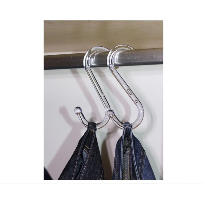 O Gancho S Acrílico Transparente é Indicado para pendurar calças e saias pelo passador do cinto. Além disso, pode ser usada para pendurar acessórios como: Bolsas, Mochilas, lenços e echarpes.